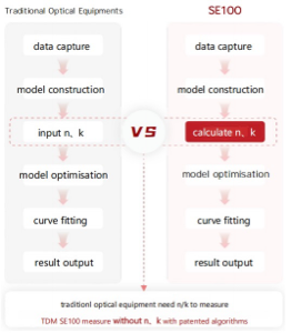 2. Unlike traditional thickness measurement tools like ellipsometers or profilometers, the SE100 eliminates the need for pre-input refractive index (n, k) values—which can be unstable due to ongoing industry optimization of perovskite compositions. Instead, it dynamically calculates and outputs n, k values during measurement, delivering fast and reliable thickness results even as perovskite formulations are adjusted.